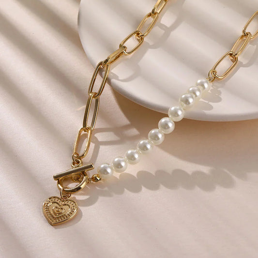 Reduziert 50,01%Weiße Steine und Perlenkette in Gold